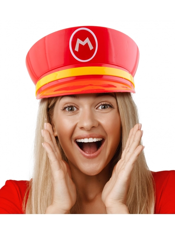 Casquette Mario rouge en PVC pour adulte