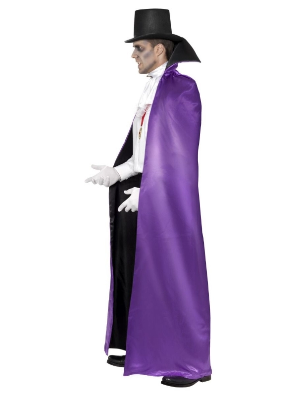 Vous pouvez avoir facilement le look classe et baroque de la créature nocturne suceuse de sang humain, grâce à notre cape réversible adulte de couleur noir et violet.