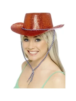 Durant une fête déguisée, il est important de choisir les accessoires idéaux afin de rendre l’interprétation authentique. Ce chapeau cow-boy pailleté rouge plastique adulte complétera positivement votre costume western.