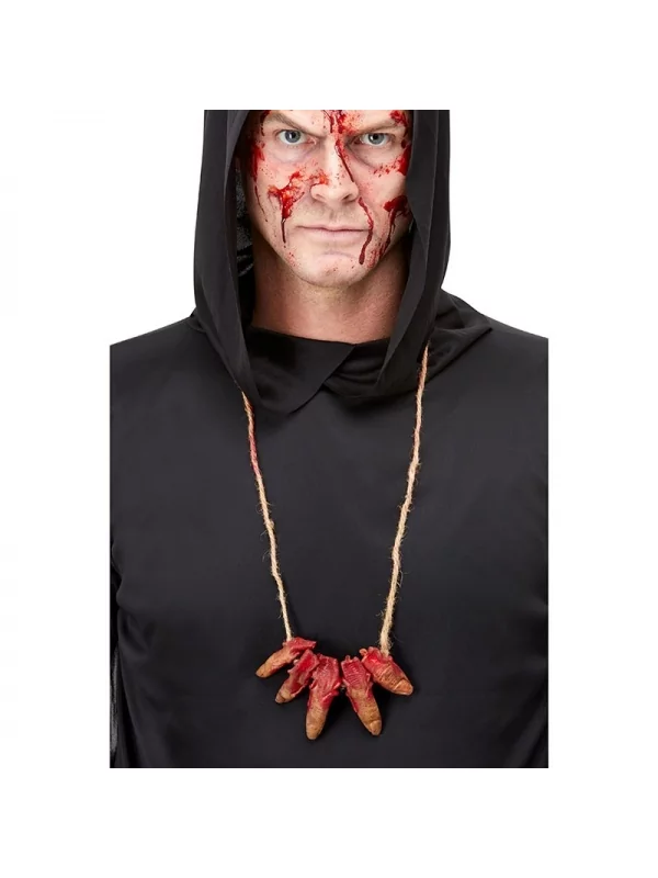 Ce collier est composé d’un cordon et en guise de pendentif des doigts humains mutilés