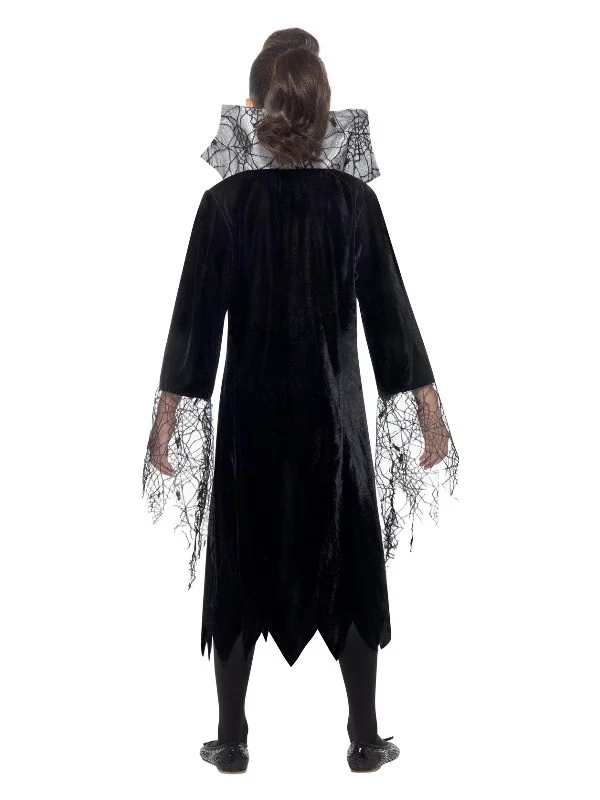 Déguisement vampire araignée fille robe à col haut, noir et argent