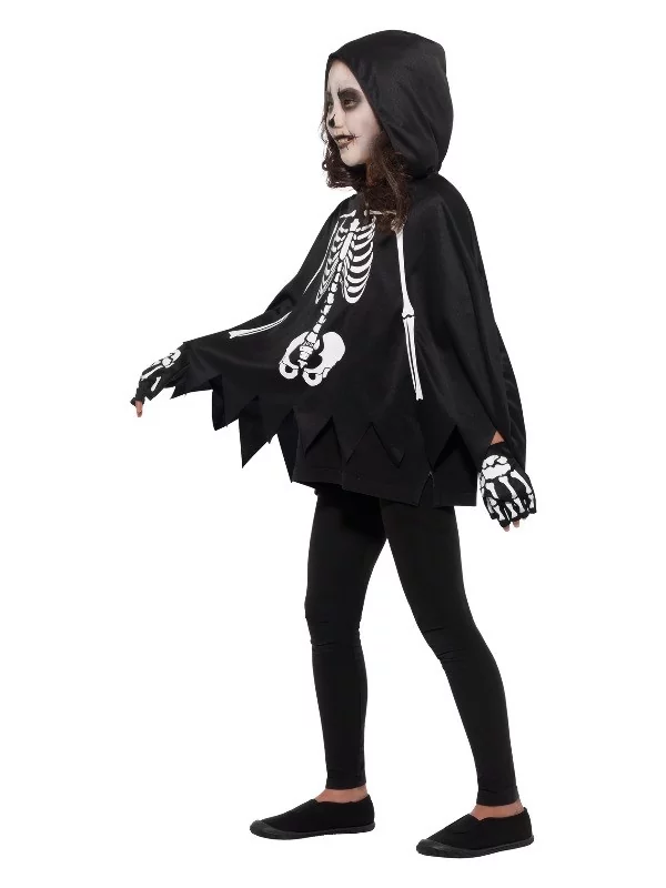 Vous vous offrez ici d’une panoplie assez complète composée d’un manteau squelette avec capuche et de gants assortis. Votre fillette ou ado n’aura besoin que d’un maquillage ou d’un masque pour asseoir son personnage funèbre.