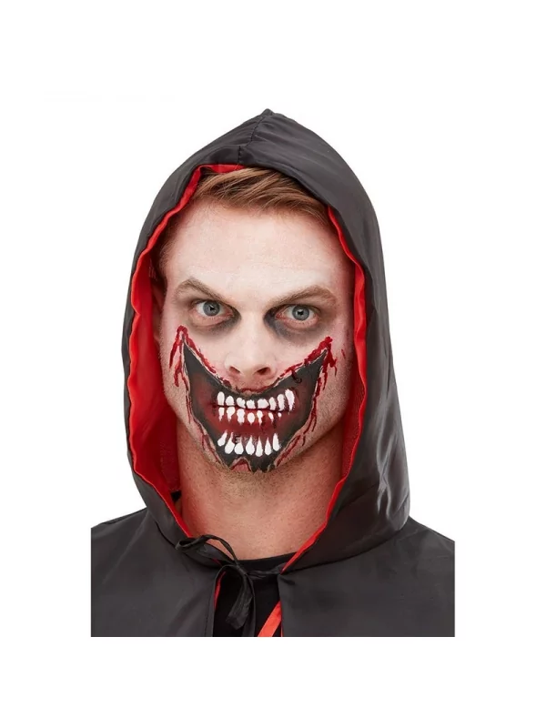 Notre kit comprend tout ce dont vous avez besoin pour réaliser cet effet impressionnant, y compris Smiffys Make-Up FX, le kit de bouche coupée, des peintures faciales aqua et rouge, du sang, des transferts, une éponge et un applicateur.
