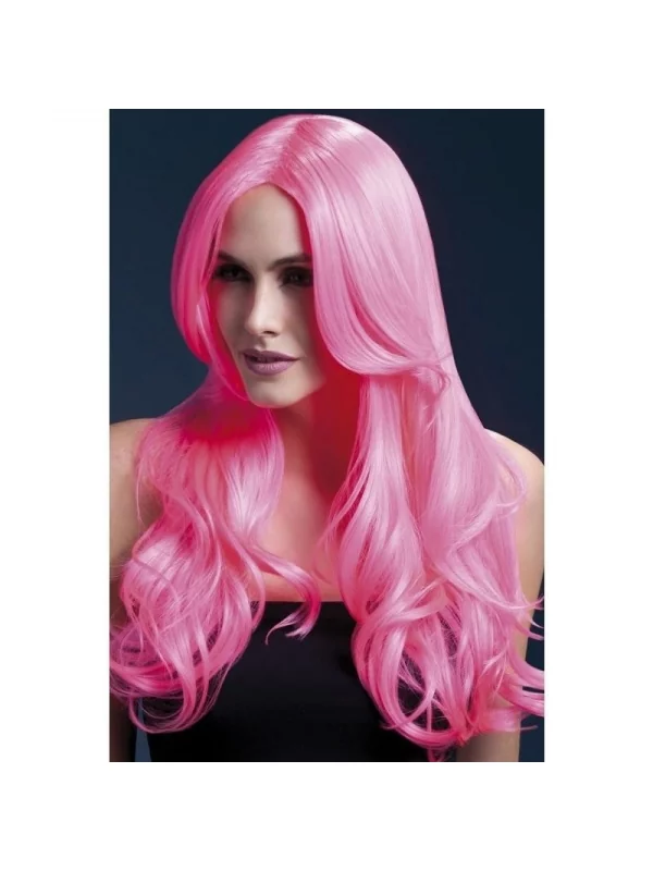 La Perruque Fever Kloe, Rose Fluo est longue avec une séparation centrale.