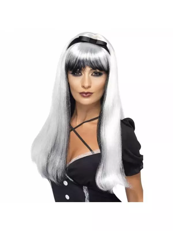 Cette longue perruque de sorcière noir et argent fera de vous une sorcière sulfureuse.