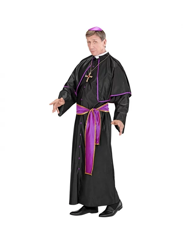 Ce Déguisement Cardinal Homme comprend aussi une calotte, de la même couleur violette que le liseré de la robe de cardinal. Une ceinture, également violette, avec une bordure dorée, complète ce déguisement. Vous la nouez à votre taille et voilà votre transformation complète !