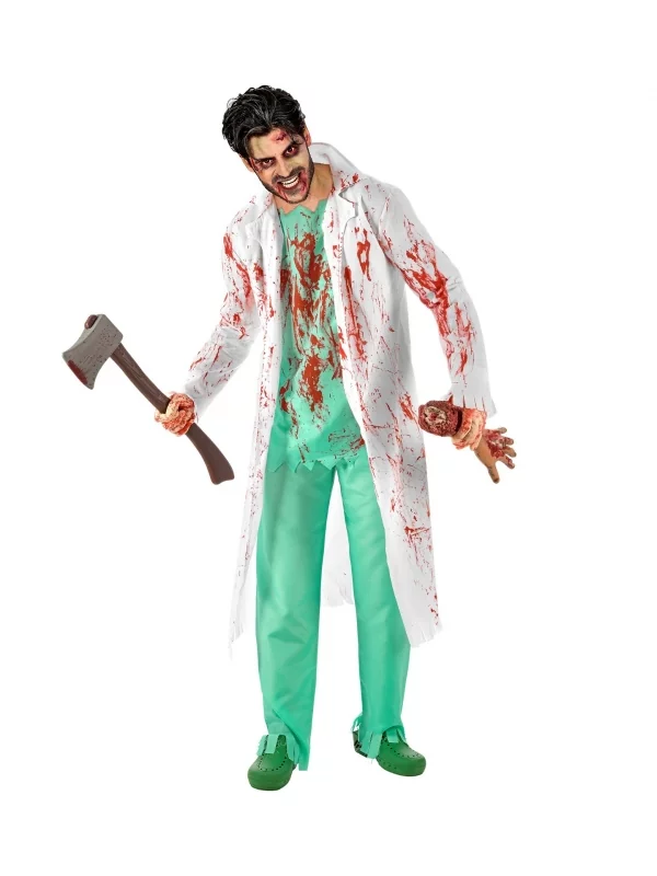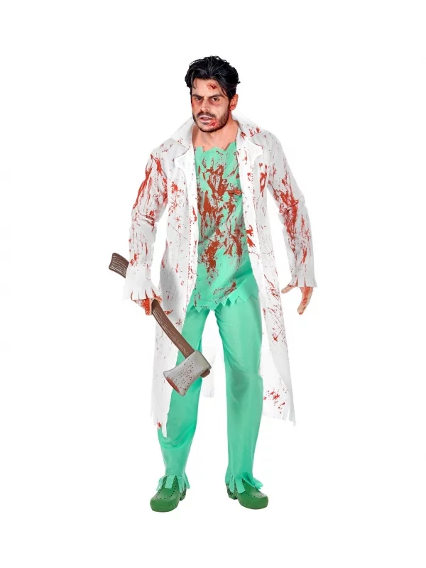 Il s’agit d’une panoplie complète, composée de l’ensemble chemise, pantalon et blouse de médecin. Mais vous aurez en sus une paire de gants. Le tout se distingue par une profusion de taches de sang, ce qui est suffisant pour angoisser les âmes sensibles. Avec ce déguisement de chirurgie zombie, vous pouvez porter un masque zombie ou tout simplement mettre un maquillage de mort-vivant. Le résultat sera tout simplement digne des spectacles de revenants cannibales les plus terrifiants.