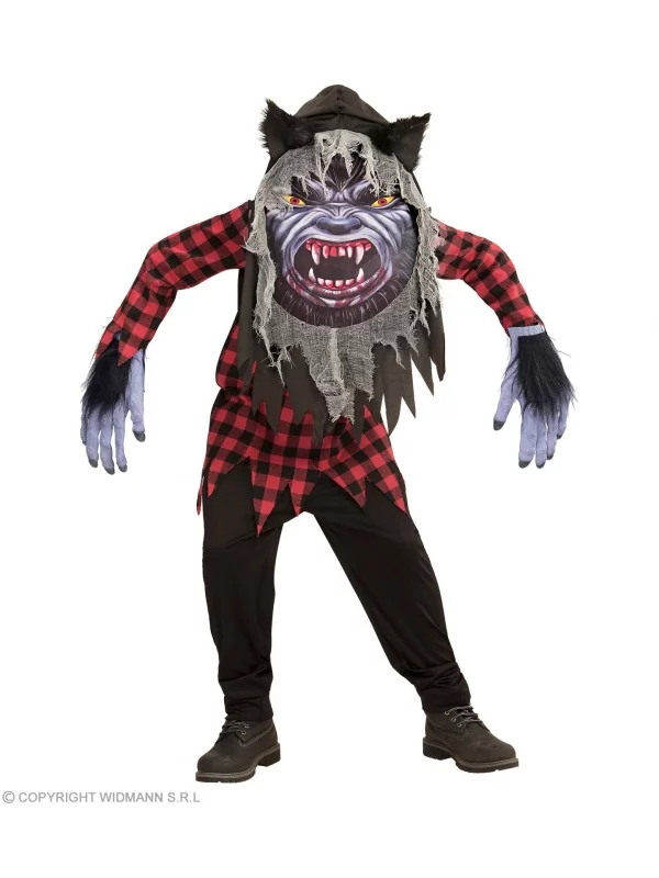 Déguisement Loup-Garou enfant (tunique, masque à capuche sur-dimensionné)