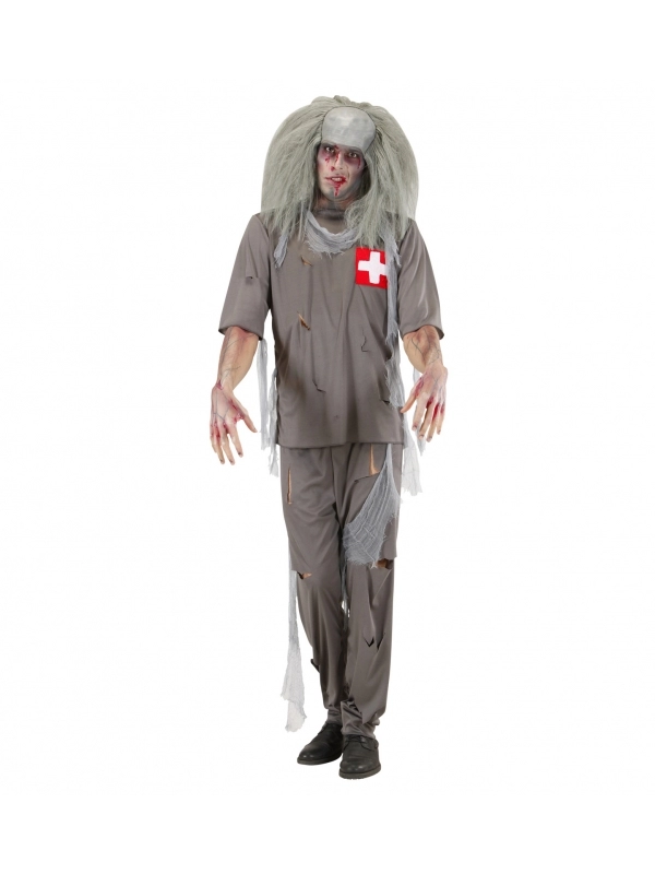 Déguisement Médecin zombie homme gris avec croix rouge !