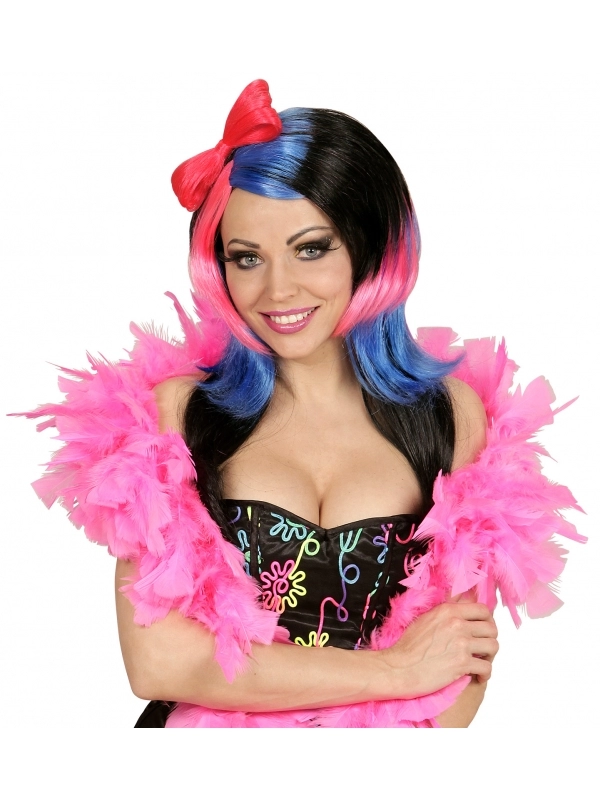 Perruque manga femme avec nœud rose