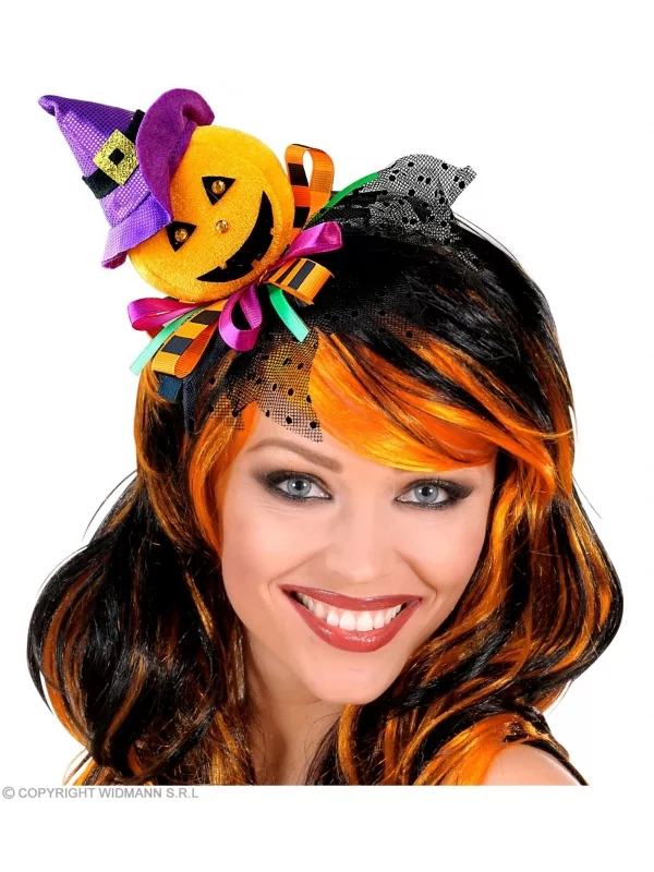Pas le temps de vous déguiser pour la soirée Halloween à laquelle vous êtes invitée et si vous portiez ce serre-tête qui représente à la fois la sorcière avec le petit chapeau violet et la citrouille orange.
